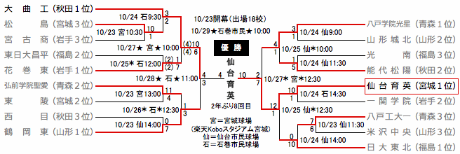 ▼東北地区大会(決勝)※仙台育英は2年ぶり8回目の優勝。明治神宮大会出場決定。